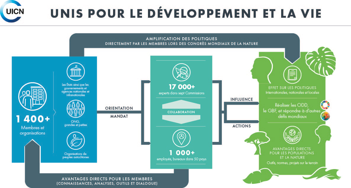 L’UICN est la seule institution rassemblant gouvernements et société civile autour d’un seul but : faire progresser le développement durable et créer un monde juste qui valorise et conserve la nature. La diversité, l’expertise et la portée de l’Union confèrent à ses décisions un mandat puissant et à ses actions un impact profond.